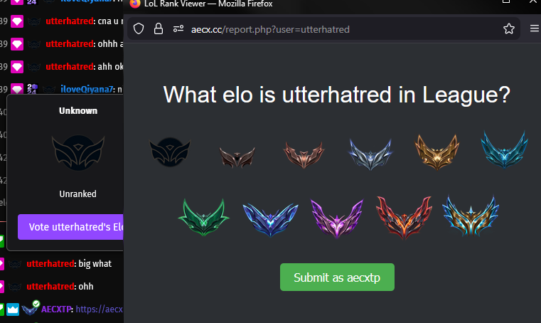 TwitchElo is a Browser addon and Website that links Twitch with League of Legends ranks. Feel free to check our list of features!